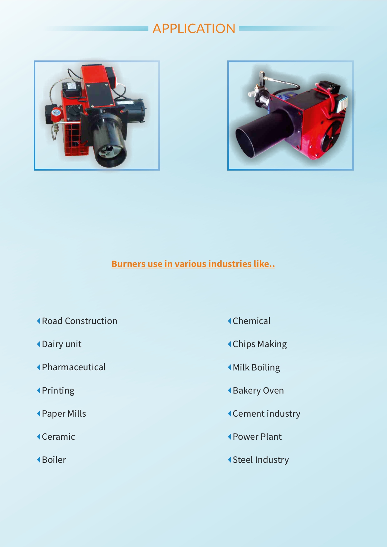 We also provide maintenance services for the above range of products. In addition, we also supply spare parts pertaining to all types of burners and hydraulic power packs.